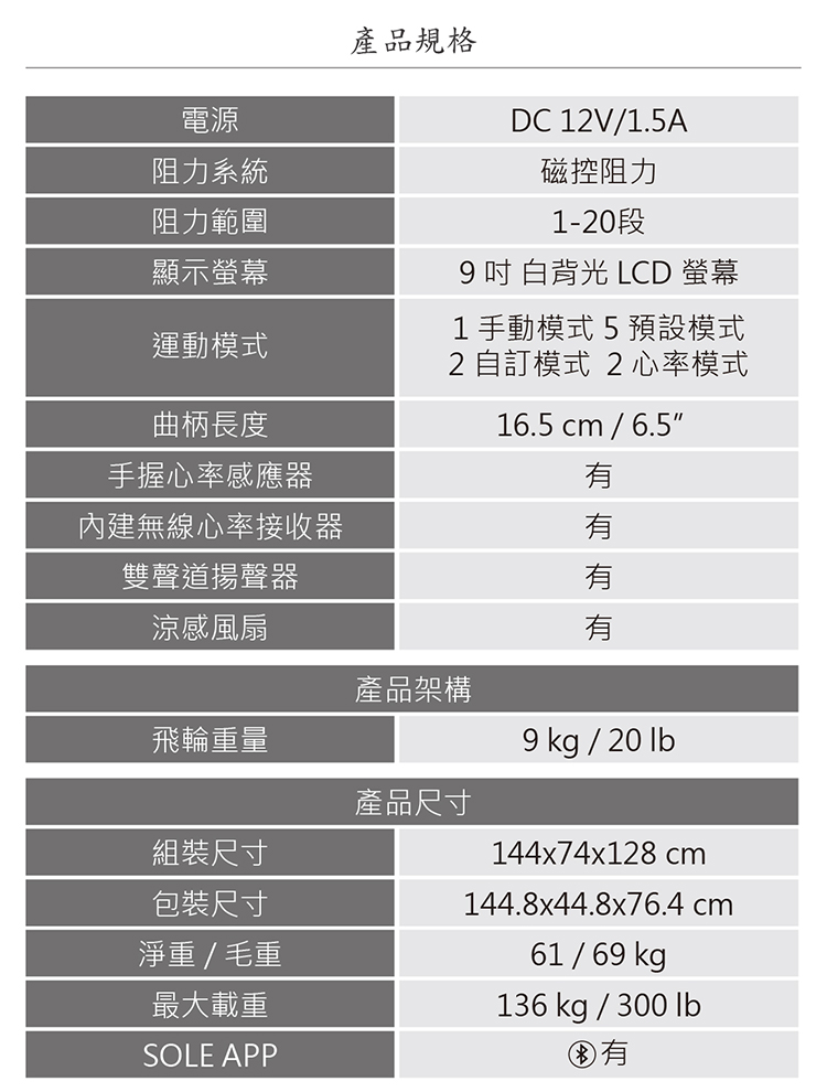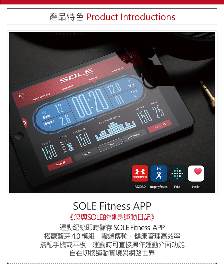 ★ 獨家 SOLE APP 物聯功能,可與 Healthkit、fitbit app同步
